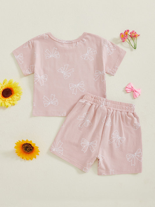 Toddler Girls Summer Outfit Bow Print Short Sleeve T-Shirt and Elastic Shorts Set Cute Summer 2pcs Clothes, Perfect for Outdoor