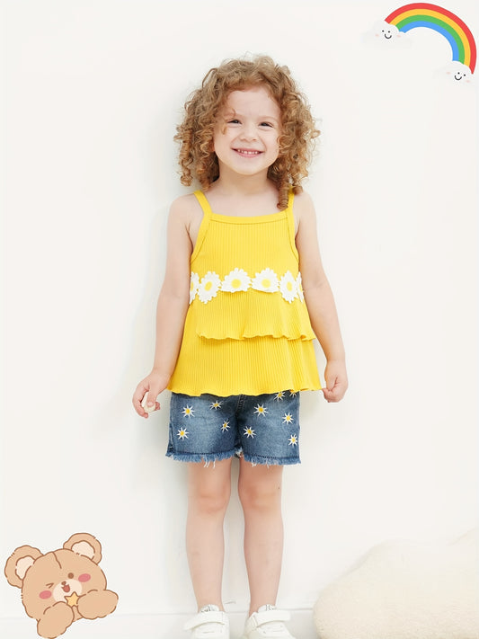 Toddler Kids Girls Summer 2-Piece Suit Baby Girls Short Sets Girls Sunflower Sleeveless Suit