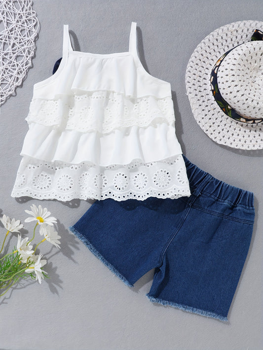 Toddler Girl Ruffle Floral Embroidery Shirt and Shorts Set Clothes