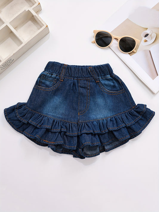 Toddle Girls' Denim Ruffled Hem Shorts, Casual Elastic Waist Denim Short