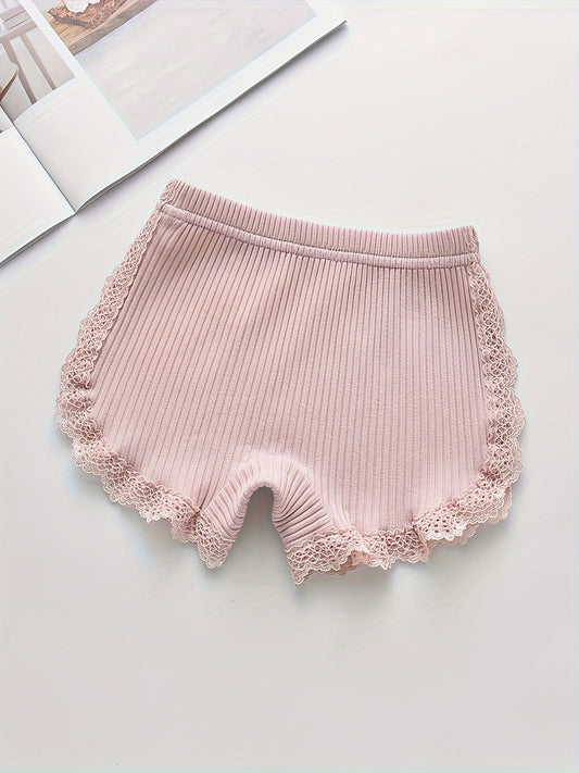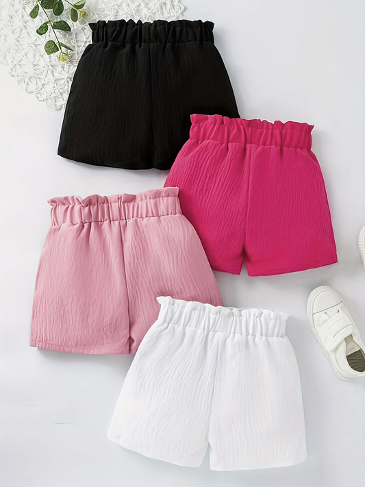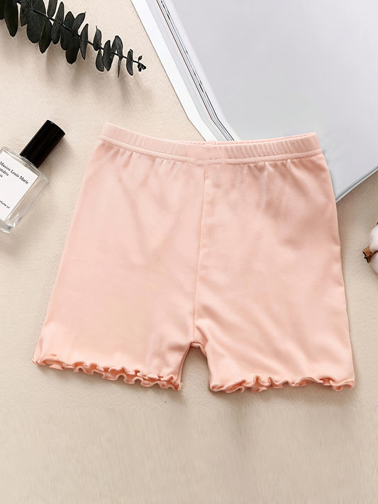 4pcs Girls’ Solid Color Frill Trim Shorts – Breathable, Versatile & Comfy Summer Gift