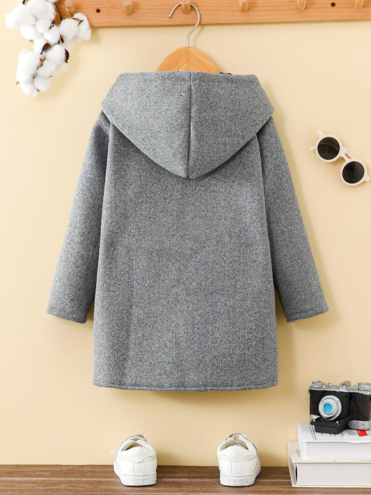 Boys' Cozy Fleece Hooded Jacket with Dual Pockets - Solid Gray, Casual Style for Fall/Winter