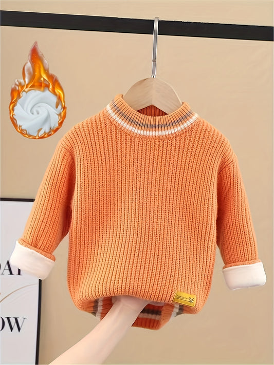 Cozy Youngsters' Fleece-Lined Knit Sweater, Stretchy & Machine Washable for Boys and Girls, Perfect for Fall/Winter