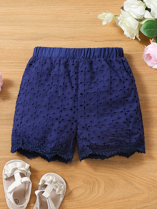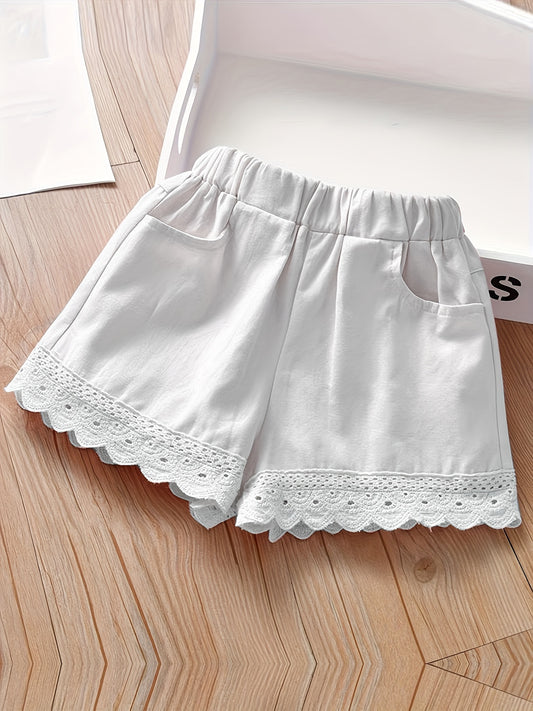 Cute Toddler Girls' Lace Shorts - Elastic Waist, Solid Color, Casual Wear for Summer, Comfortable, Breathable, Soft Fabric