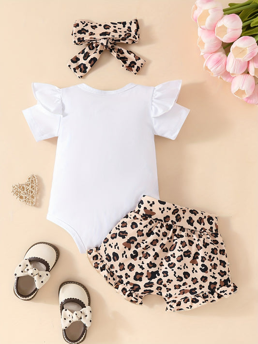 Daddy's Girl" Toddler Summer Outfit – Ruffle Bodysuit & Leopard Shorts Set (58 characters – concise, keyword-rich, and engaging.)