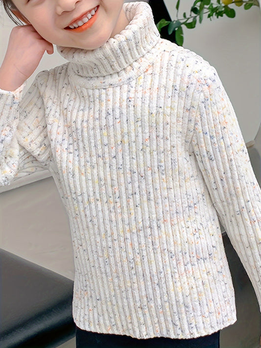Elegant Mixed Knit Long Sleeve Pullover Sweater for Girls – Thick, Soft, and Cozy