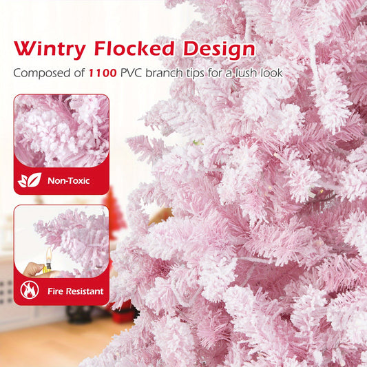 7.5ft Pre-Lit Snow Flocked Christmas Tree – 1100 Tips, 450 Lights, 8 Modes, Hinged Design