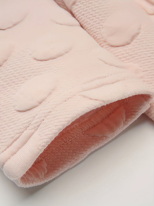 Cozy & Chic Girls' Solid Color Fleece Dress - Casual Long Sleeve, Crew Neck with Bow Detail, Perfect for Fall/Winter - Machine Washable Polyester Knitwear