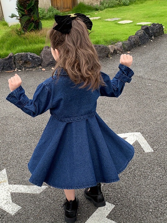 Girls’ 2PCS Denim Outfit – Sundress & Crop Jacket