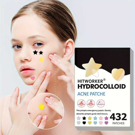 432pcs HITWORKER Star & Heart Hydrocolloid Patches - Waterproof Non-Drying, Colorful Cute Pimple Stickers with Star & Heart Shapes, Sensitive Light Safe, Invisible Under Makeup, for Face, Teens & Adults, All Light Types (, Bl