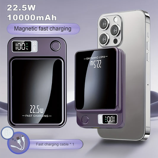 Sunthon Magnetic Wireless Charging Power Bank, 10000/5000mAh Portable Wireless Charger, 22.5W/PD20W Fast Charging Battery Pack, with LED Power Display, 2 Outputs And Dual Input External Battery Pack for iPhone 17/16/15/14/13/