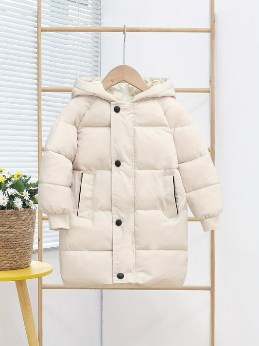 Girls Long Hooded Coat, Thick Warm Stylish Long Sleeve Casual Snow Suits, Fall/Winter