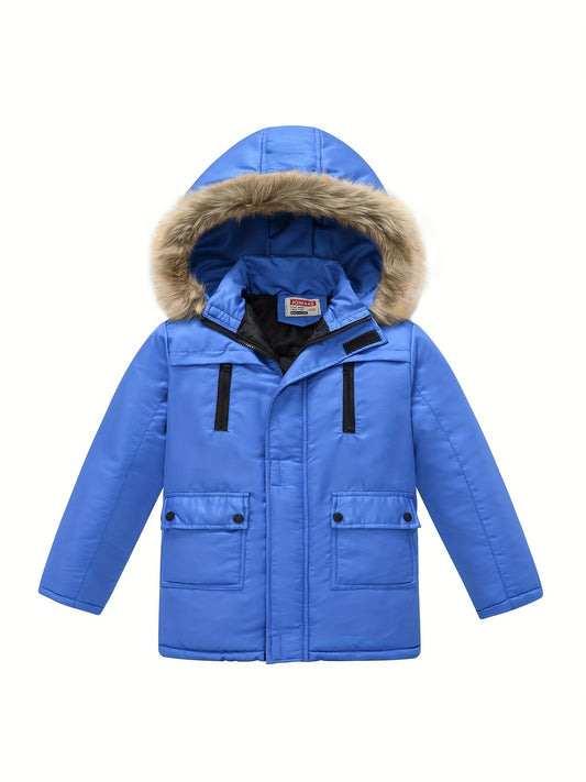 Youngsters' WarmthMax Hooded Parka Jacket - Ultra-Thick, Windproof, and Water-Resistant Winter Coat with Multiple Pockets for Boys and Girls, Machine Washable, and Perfect for Outdoor Play