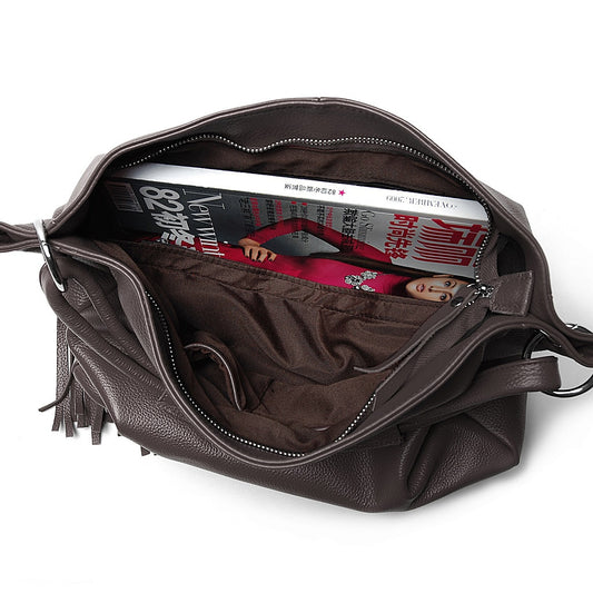 Zency Soft Genuine Leather Handbag Elegant Fashion Tassel Female