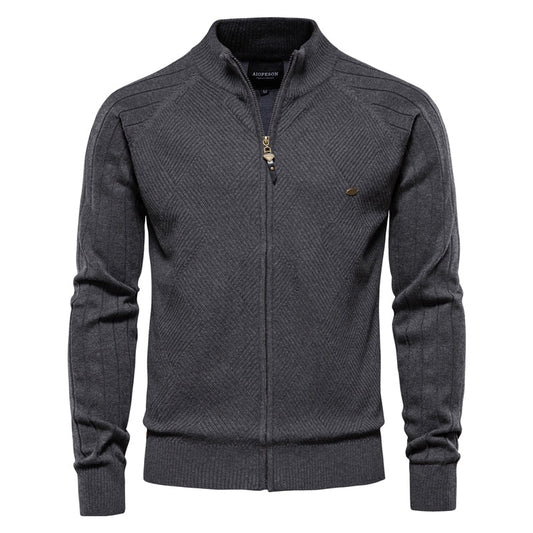 AIOPESON Argyle Solid Color Men’s Cardigan – Casual Zipper Cotton Winter Sweater